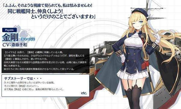 金刚出身皇室,隶属于“重樱”舰队。她的言行举止尽显皇室大小姐的风范,与注重协调礼仪的“重樱”风格十分契合。在联合大演习期间,金刚不仅凭借其特殊身世负责接待访客,还与山城一同参与了演习的正式对战环节。