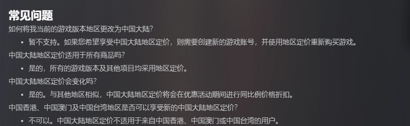 4. 其他地区是否适用呢?并不适用。这次的专属定价仅针对中国大陆玩家。