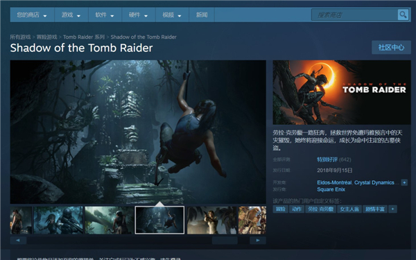 值得庆贺!《古墓丽影:暗影》在Steam平台首发表现亮眼,好评率高达91%