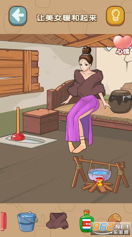 1, 游戏开始时,玩家需要借助道具帮助美女成功逃到岸上。