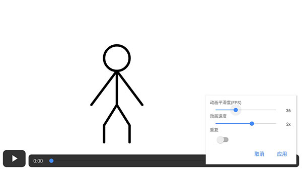 点击左边的播放按钮就能观看我们制作的动画了,另外你也可以通过设置调整动画的播放速度哦。