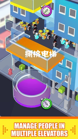 《拥挤电梯》是一款敏捷类闯关游戏,玩家在游戏里扮演电梯乘务员,需要操控电梯上下运行来接送公寓住户。电梯存在承载量限制,同时每位住户的等待时长也有规定,所以玩家得合理规划住户的乘坐顺序,既不能让住户长时间等待,更要避免超时情况发生,否则住户会愤怒到“爆炸”。