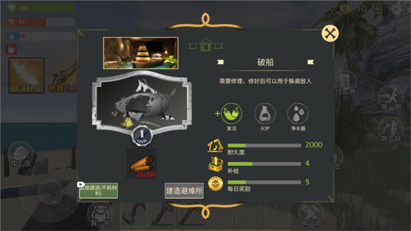 在游戏里,玩家需要及时收集五根竹子,并且砍伐两百块木材,用这些材料来搭建避难所。
