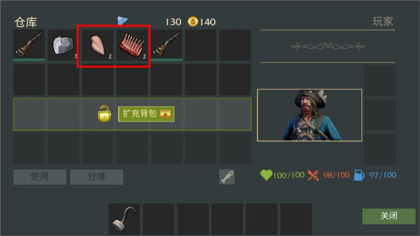 在野外求生挑战游戏里,玩家得留意及时为身体补充能量,打开背包就能查看已获取的食物。