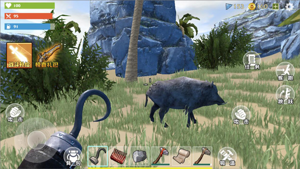 玩家在狩猎野猪和野鸡时,需留意攻击野猪的方位——从背后发起攻击更容易将其击杀,若正面进攻则很可能反被野猪伤害。成功猎杀野猪后,记得及时拓展背包容量,同时领取对应的击杀奖励。