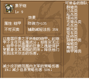 很多《豪曹》手机版玩家对山贼和海盗的策略骚扰都感到深恶痛绝,不信的话你可以试试炼狱难度的第一关。新版象牙铠的减轻策略伤害光环比旧版提升了约50%,范围也扩大到了大没羽箭的覆盖范围,不再是鸡肋装备了。