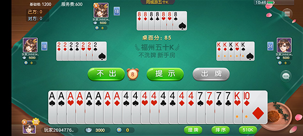 同城游五十K手机版是一款扑克牌游戏,拥有丰富多样的游戏规则与玩法。该游戏支持多人实时联网对战,玩家能够与全球各地的真实玩家展开较量,感受竞技带来的刺激与乐趣。同时,游戏十分重视玩家间的社交互动,配备了语音聊天和社交功能,玩家可以与其他玩家实时交流,结交朋友,一同畅享游戏的欢乐。