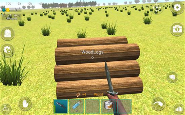我还碰到了木材堆,用匕首去攻击的话,每次能得到4个木材,没一会儿就能凑够99个了。