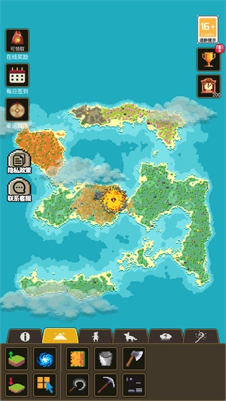 点击地形功能,就能为你的沙盒世界生成地形,按照你的需求挑选合适的选项就行。