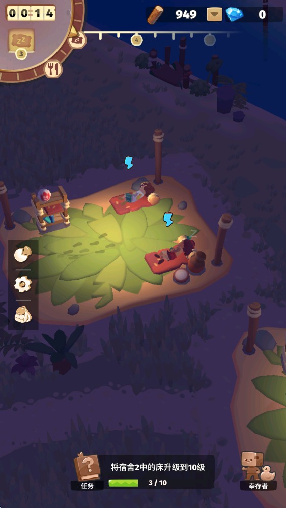 到了夜晚就是休息时间,大家会通过睡觉来补充体力。