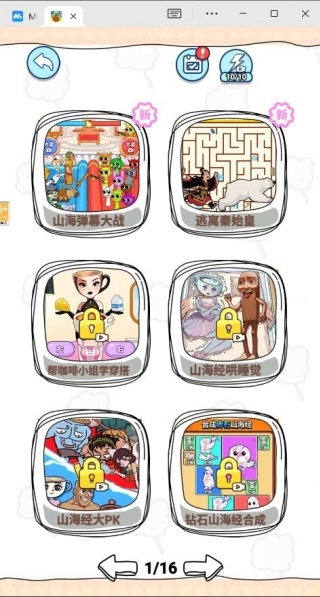 多样的主题关卡,自由选择一个进入,比如山海弹幕大战、逃离秦始皇等等。