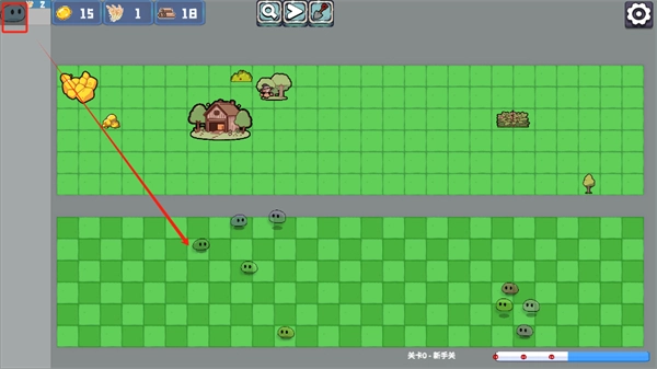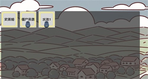 游戏共有三个关卡,依次为史莱姆、僵尸来袭和水池1,选择第一个关卡。