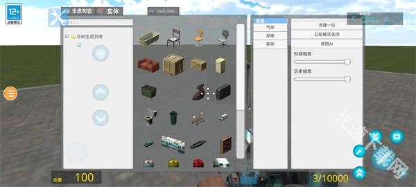 点击菜单,就能添加想要加入的物品、人物或生物,也可以切换场景;