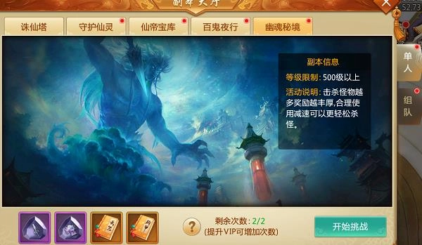 副本入口:副本大厅-单人-幽魂秘境标签页