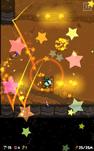 要是挖到炸药,它就能帮我们炸掉周围的土块;要是挖到电钻,它就会向下挖掘,自动帮我们钻开地底的土块。