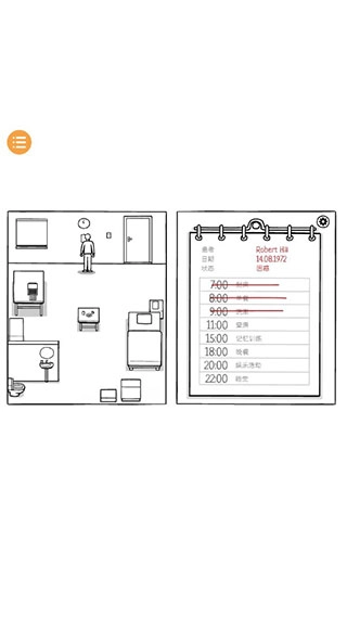 之前的起床、早餐、洗漱都已经完成,接下来是11点的查房。到4处黑圈位置点击放大并按下按钮,然后和进来的护士交谈。