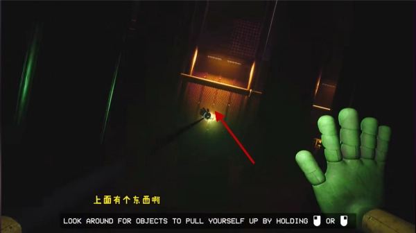 接着向右边走会遇到一个吊索,顺着它就能爬上去。