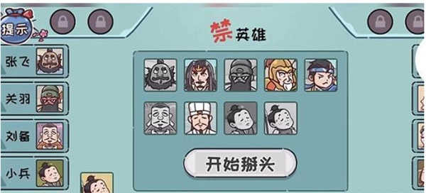 第十五关:点击三次“禁”字解锁关羽,之后先排出五虎上将阵容;第二局安排桃园三兄弟出场,再搭配两名小兵;第三局则派出张飞、马超、赵云、诸葛亮与一名小兵组成队伍。