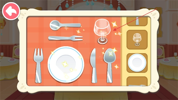 将右侧酒杯移至餐盘轮廓处,匹配后触发特效。