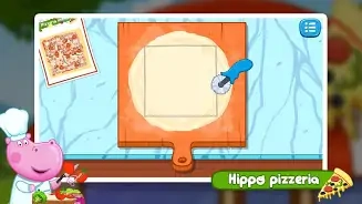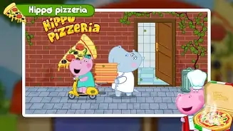 点击界面上的【蓝色按钮】,就能进入【Hippo-Pizzeria】披萨店的场景,从而开启披萨制作和餐厅经营的游戏流程。