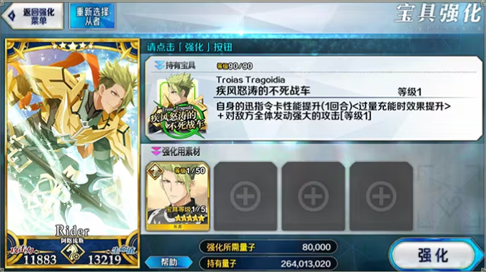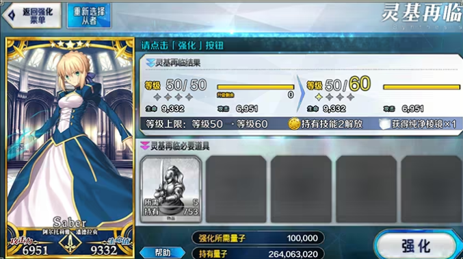 从者能够和在游戏过程里获取的「银棋」「金像」这类强化素材开展合成操作,以此完成灵基再临(也就是从者进化),从而变得更加厉害。