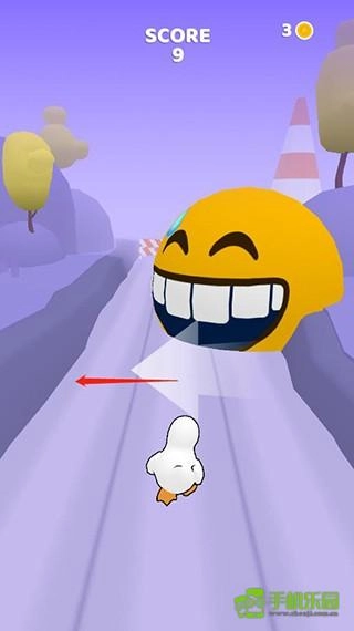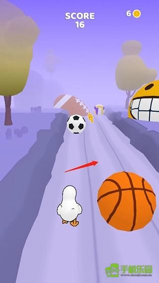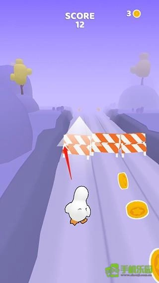 游戏的玩法其实挺简单的,就是经典的跑酷模式,通过滑动屏幕的上下左右来操控鸭子进行跑酷,像碰到这类障碍物时就向下滑动屏幕。