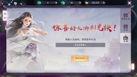 兑换步骤如下:先在界面右上角找到并点击“福利大厅”,接着点击“兑换”选项,随后把礼包码输入到兑换框内,最后点击“领取”按钮即可完成兑换。