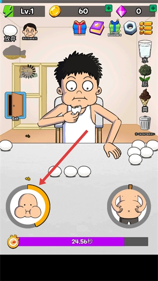 2、注意左边的进度条,不停点击能防止角色噎死。