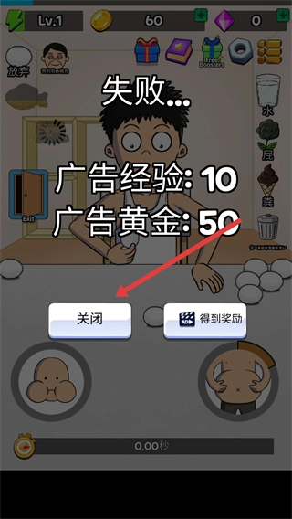 4、若未完成目标就结束,系统会显示失败,此时点击关闭按钮即可重新发起挑战。