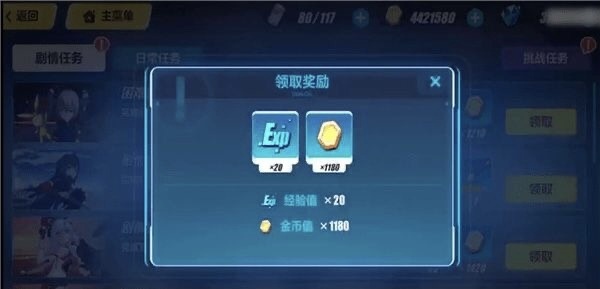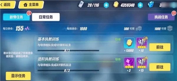 4、先合理使用50%的经验芯片,之后就一直推进主线任务把体力消耗完;体力不足时可以用系统赠送的体力,另外午餐和晚餐时段也会有体力赠送,之后再去完成任务就能获取丰厚的经验奖励。