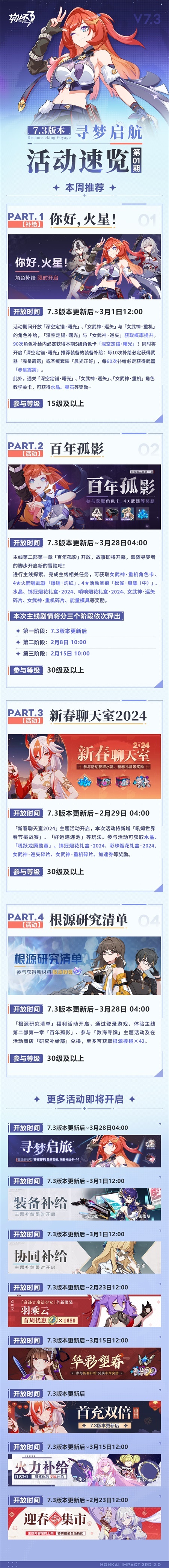 《崩坏3》7.3版本作为第二部主线剧情的开启篇章,将正式拉开新剧情的帷幕。版本更新后,不仅有全新女武神与主题皮肤登场,各类新装备也会同步上线,更有丰富的新春活动福利相伴,多重好礼助力冒险。玩家将在承接第一部剧情的基础上,继续女武神的冒险征程,开启专属于自己的全新旅途。