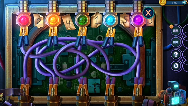 在左下的放映机场景中,先放大机身,接着使用【指示图碎片】,依次安装下方的蓝色按钮、红色按钮,再装上红色开关,然后安装胶片盘和螺母,最后打开开关,即可获得【红色灯泡】【锯柄】【鸟饰物】。