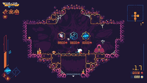 游戏采用鲜亮明快的像素画风,玩家将操控主角在狭小地牢中闪转腾挪,配合Joonas Turner创作的动感背景音乐,尽情体验类银河恶魔城游戏的狂野粗豪风格!