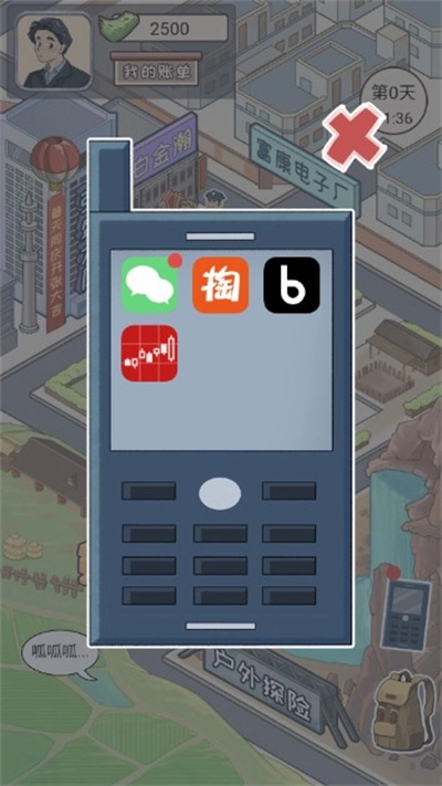 3、也能选择打开背包,或是借助手机与自己的朋友进行互动,抑或接受任务。