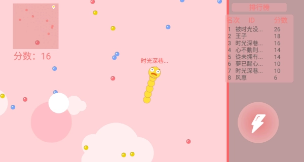 4、等所有准备工作都完成后,你就可以操控自己的蛇蛇四处游走,吞食能量体来让它快速成长。