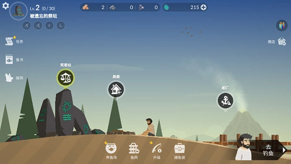 2、玩家需通过钓鱼获取资源,进而兑换工具和获取钻石