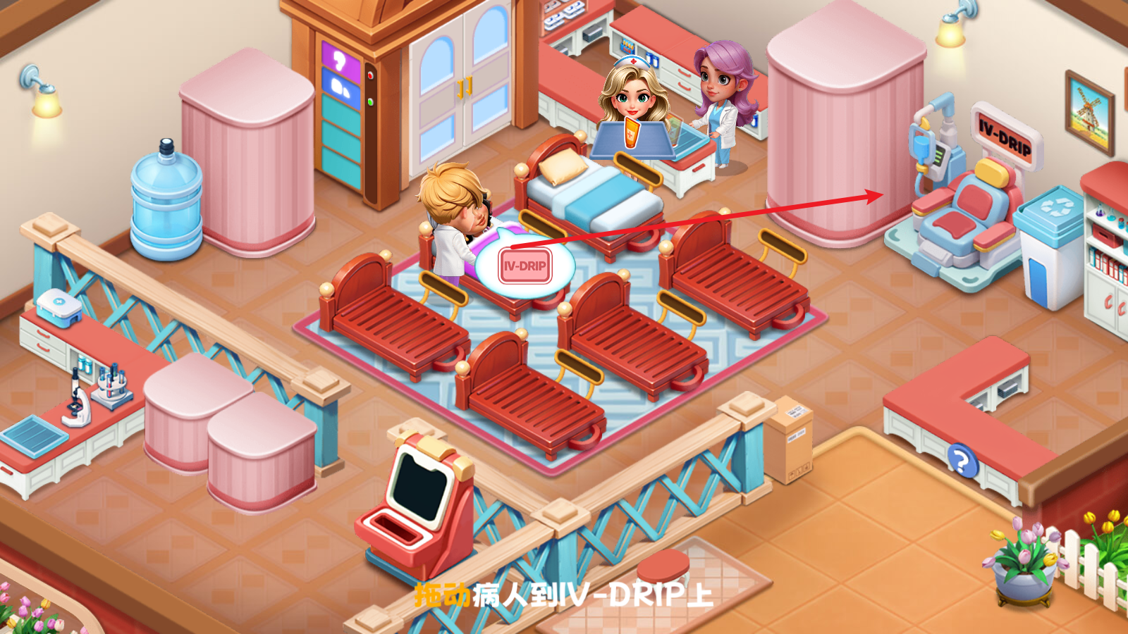 1、游戏开始后,门口会有病人等候,我们需要把他们拖到空床位上。