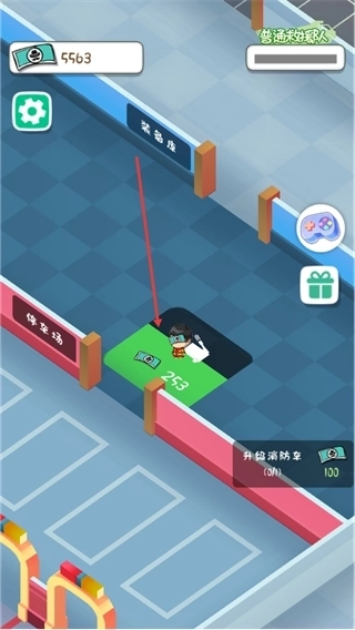 1、在该场景中点击角色所在区域可触发互动,可通过相关操作获取货币,还能消耗货币进行升级消防车的操作推进游戏。