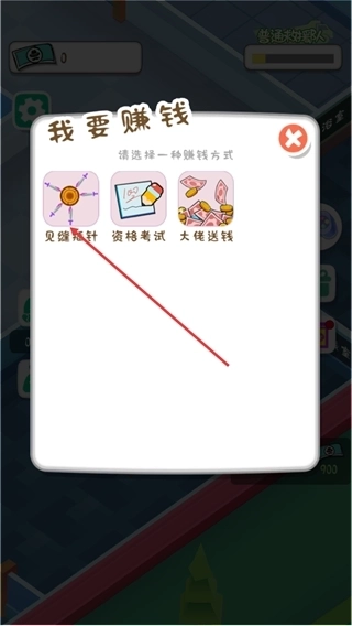 2、当弹出我要赚钱的选择界面时,点击见缝插针选项即可进入对应的赚钱玩法,完成玩法可获得游戏货币。