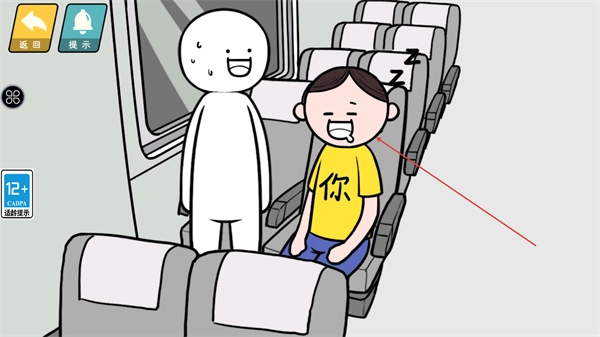 1、在车厢场景里和白色人物进行互动,以此触发互动动作,进而推动关卡剧情的发展。