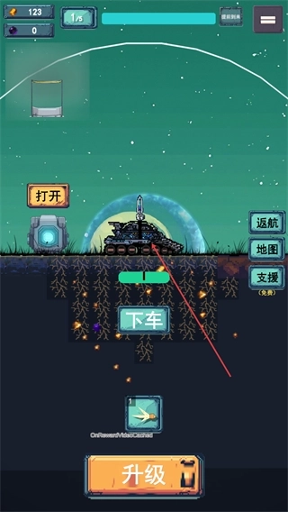 1、在场景中点击下车操控角色行动,点击升级强化战力,推进探索。