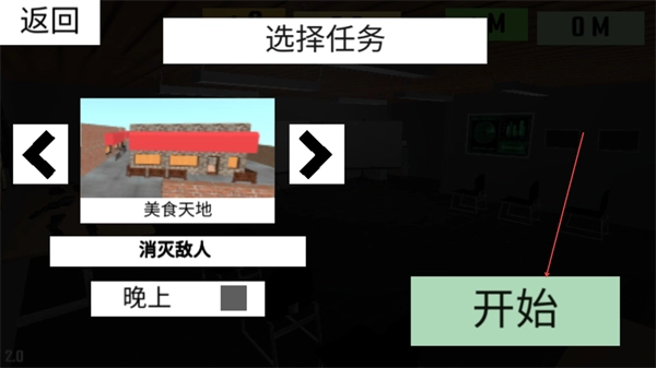 1、在任务选择界面挑选消灭敌人的任务,点击开始按钮进入游戏关卡。