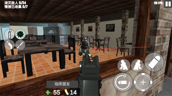 4、进入室内场景后,对敌人发起攻击,以此推动消灭敌人的进度条,直至完成该任务环节。
