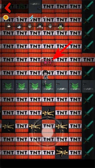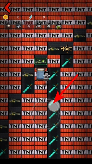 2、在TNT场景中,点击界面下方的圆形按钮,可操控角色进行移动,靠近上床区域来推进游戏流程。
