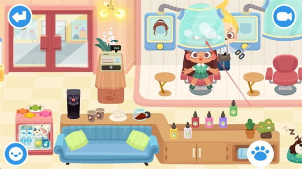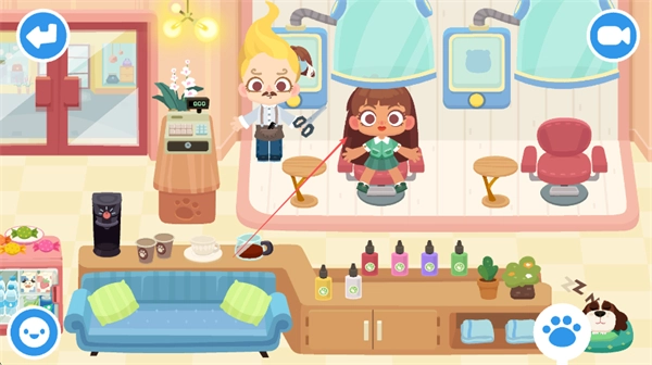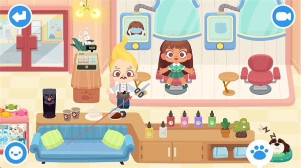 1、在美发店场景里,和顾客展开互动,为美发服务做准备,推动场景流程向前进行。