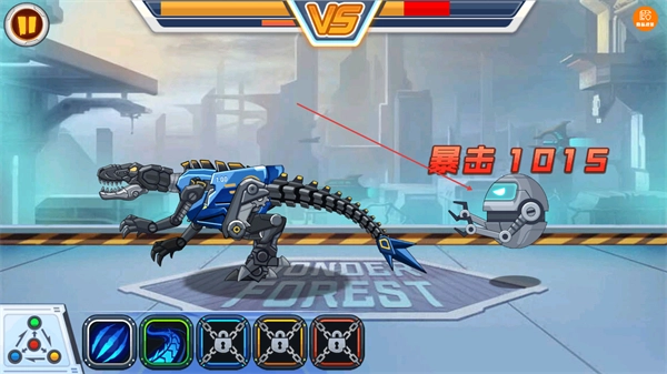 1、操控机械恐龙进入对战场景,准备与敌方机器人展开战斗。