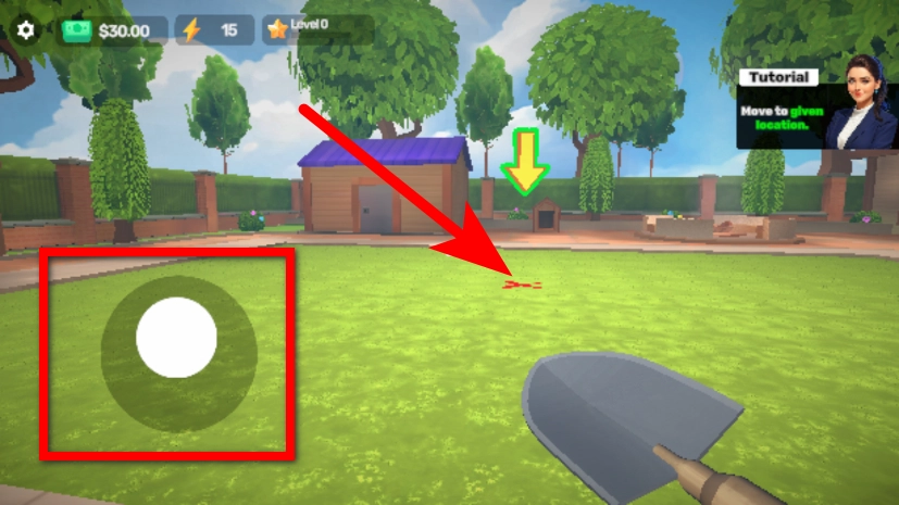 1、在游戏界面,点击左侧移动按钮,前往指定位置。