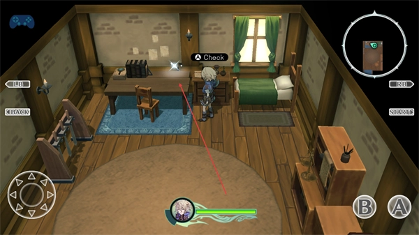 2、来到书桌附近的区域,点击Check进行互动,查看这个区域里的线索或者道具。