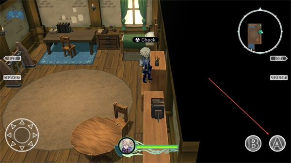 4、前往房间内的圆桌区域,点击Check完成该区域的互动,推进剧情探索进度。