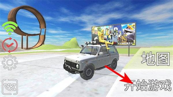 3、紧跟红色箭头指引,点击界面右侧的功能按钮,可调整车辆相关设置,借助该操作优化车辆状态以适配关卡。